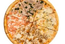 1700-1800 г • Соус томатный, моцарелла, шампиньоны свежие, лосось, классические итальянские колбаски Pepperoni, ветчина куриная, Приправа Орегано, масло чесночное