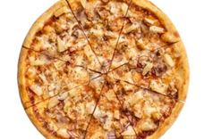 32 см/500-600 г • Томатный соус, соус Барбекю, лук, моцарелла, мясо цыпленка, грудинка с/к, ананас консервированный, чесночное масло, орегано