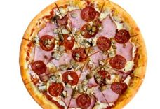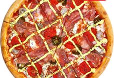 32 см/450-550 г • Томатный соус, моцарелла, салями, бекон, сосиски, чесночное масло, орегано