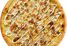 32 см/450-500 г • Сырный соус, моцарелла, цыпленок гриль, соус Ранч, лук фри, приправа Орегано, масло чесночное