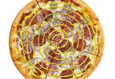 32 см/500-600 г • Томатный соус, соус Горчичный, Моцарелла, колбаски Пепперони, грудинка, куриная колбаска, лук, Орегано